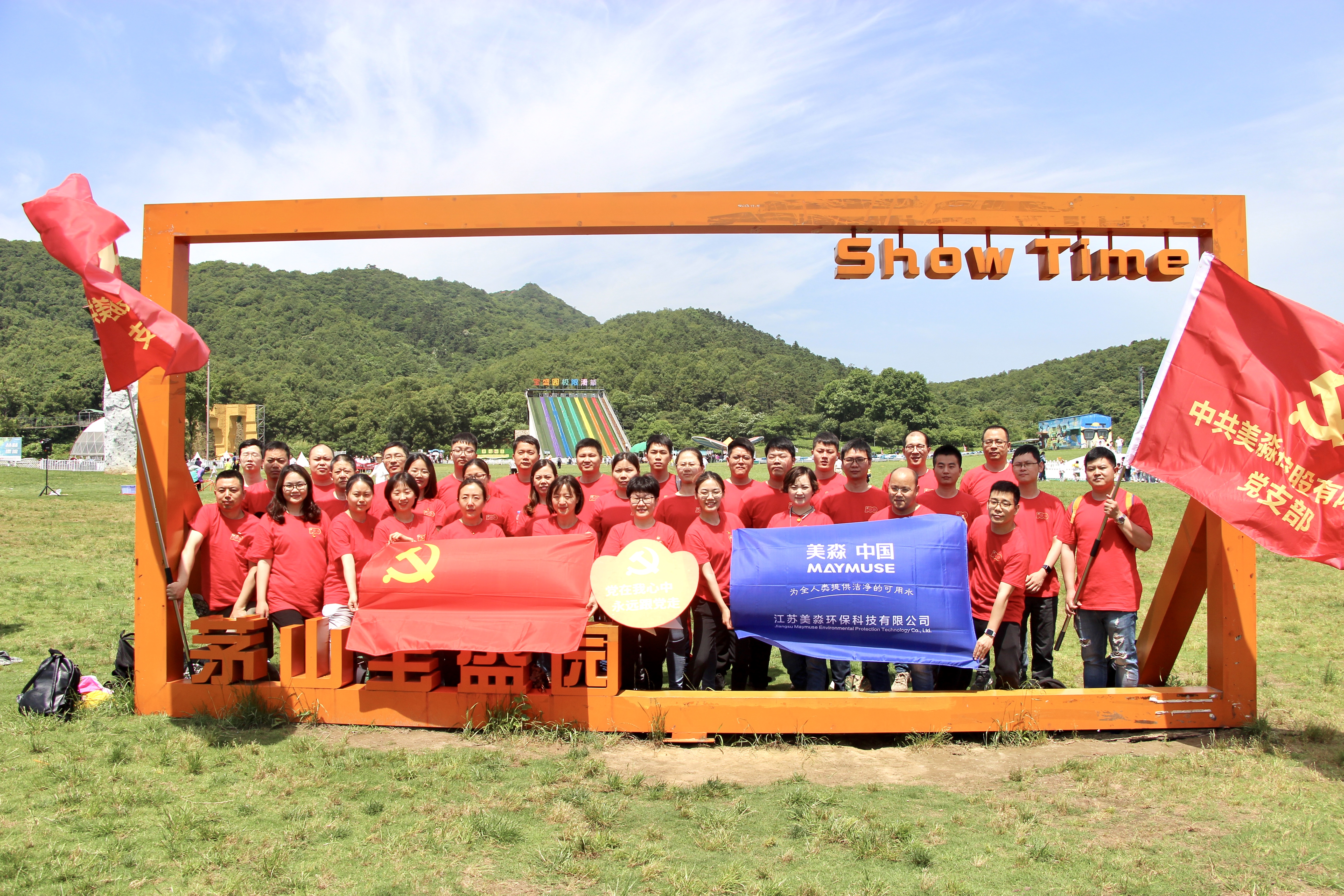 5月29日,江蘇美淼環保科技有限公司“奮斗百年路 青春心向黨”紅色團建活動在茅山寶盛園舉行。