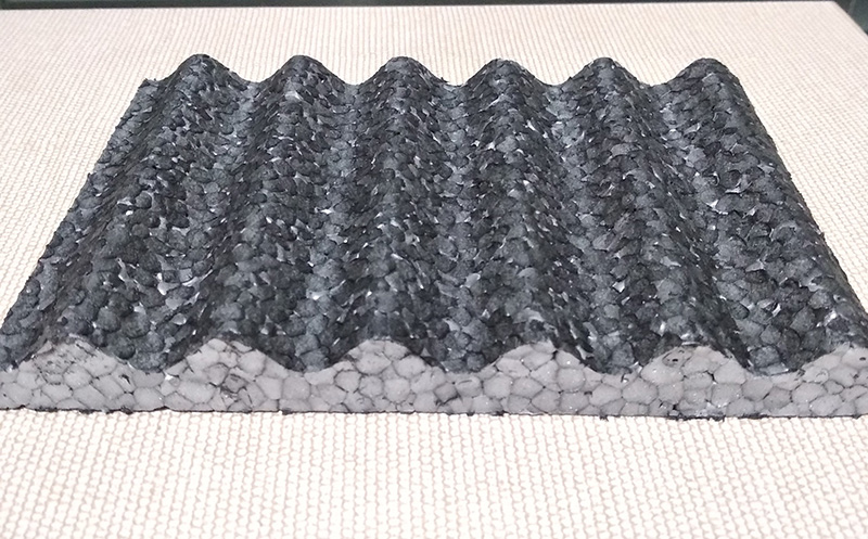 1.基層平整度必須達(dá)到要求,確保改性聚丙烯保溫隔聲板鋪設(shè)平整(若是波浪板平整面放下,波浪面朝上),不得存在孔洞及翹腳情況發(fā)生。